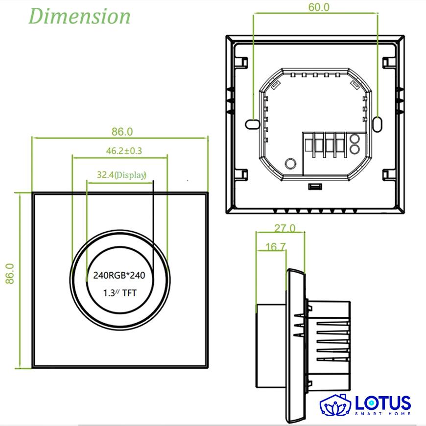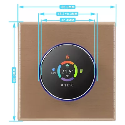 ترموستات Phoenix Tuya BAC-7000ALW با نمایشگر رنگی، طراحی لوکس و حلقه LED، کنترل سه سرعته فن و سازگاری با Tuya Smart، انتخابی مدرن و دقیق برای مدیریت سیستم‌های فن‌کویل است.