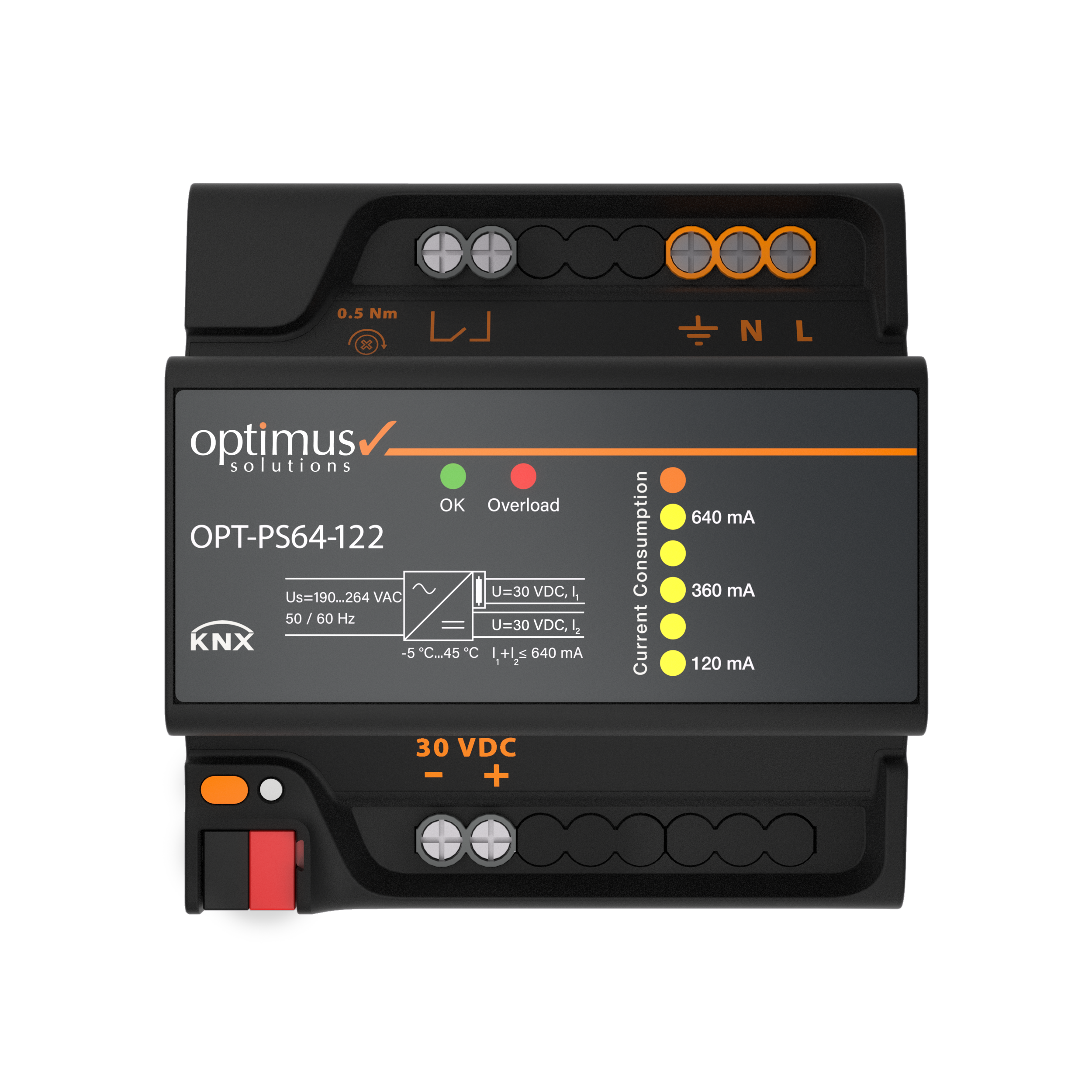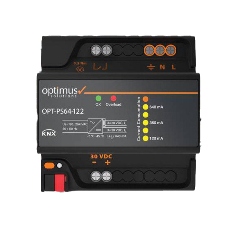• برای پروژه‌های بزرگ‌تر و تابلوهای مرکزی KNX، منبع تغذیه (پاور) سیستم هوشمند Optimus 640 با خروجی 30 ولت DC / 640 میلی‌آمپر، گزینه‌ای مطمئن و قدرتمند است.