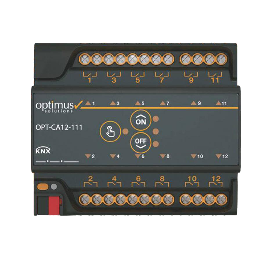 : این دستگاه دارای 12 رله می باشد ، هر رله بصورت مستقل میتواند یک مسیر روشنایی ( یا هر وسیله برقی ) را از طریق شبکه KNX کنترل نماید . هر جفت رله این دستگاه میتواند یک مسیر پرده برقی را کنترل نماید. هر سه رله این دستگاه میتواند یک مسیر فن کوئل را کنترل نماید. همچنین این دستگاه دارای قابلیت کنترل دستی می باشد که می توان آن را غیرفعال کرد.